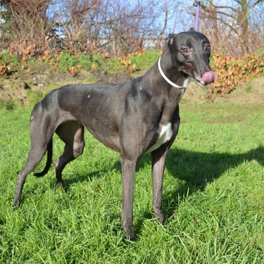 Meet Buddy, a 3 year old black greyhound looking for his forever home. He's big, soft and laid back. Buddy loves long naps, treats and someone to cuddly with. He's wonderfully friendly, both with people and other dogs. In fact, Buddy loves having canine company - he's the polite, easy going friend every dog wishes they had.