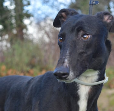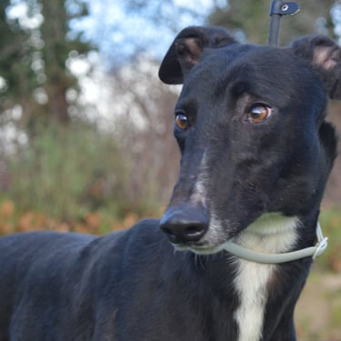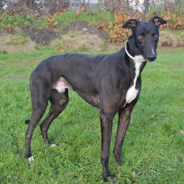 Meet Vince, the two and a half year old black greyhound looking for his forever home. Despite his size, Vince has a big heart and an even bigger personality. He is intelligent, quick to learn, and always ready to show off his clever side.... especially if there's a treat involved.